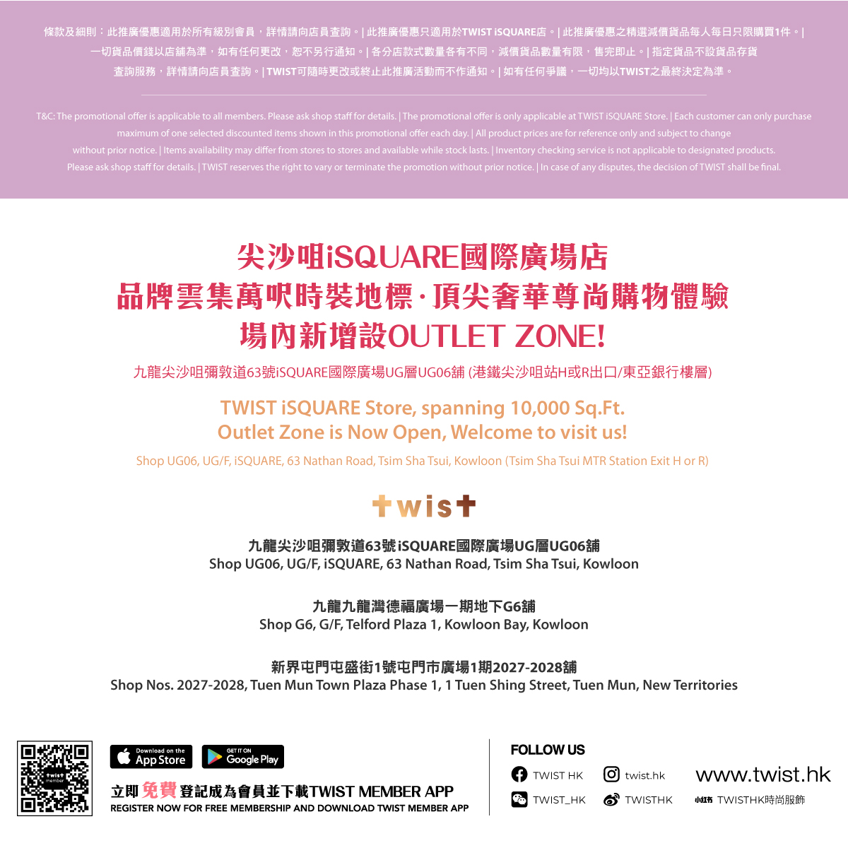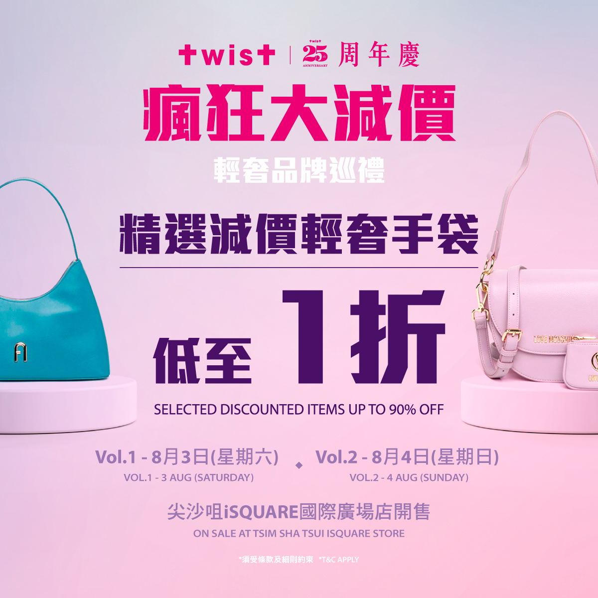 【TWIST 25周年慶瘋狂大減價:輕奢品牌巡禮!精選減價貨品低至1折!Vol.1及Vol.2將一連兩天於8月3日(星期六)及8月4日(星期日)於尖沙咀iSQUARE店開售!】
